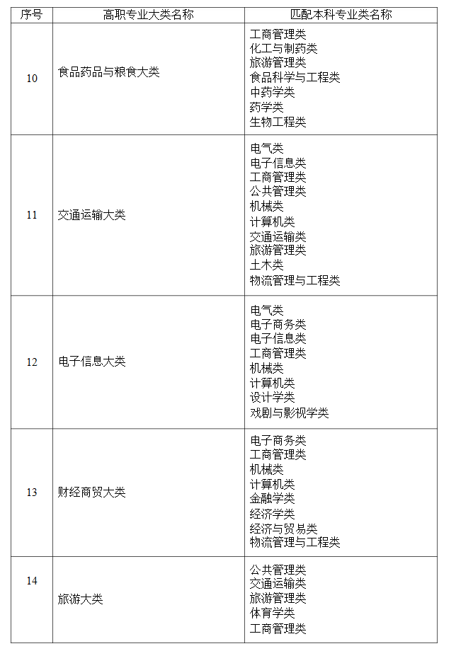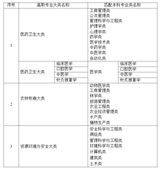 2021年湖南專升本本??茖I大類對照表(僅供參考)