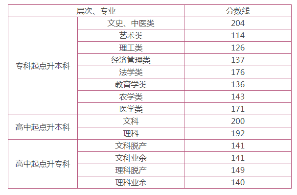 2014年湖南成人高考錄取控制分?jǐn)?shù)線:
