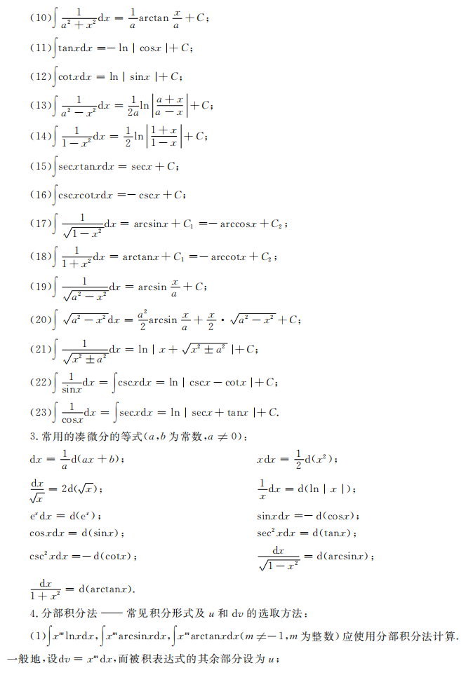 湖南專升本高等數學常用公式總結(二)