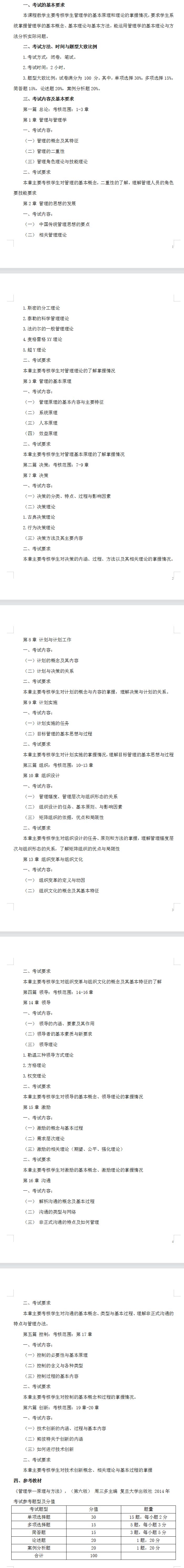 考試內(nèi)容:解析溝通的概念及基本過程,溝通的類型與網(wǎng)絡(luò),非正式溝通的特點(diǎn)及如何管理??荚嚂r(shí)間120分鐘,考試題型:?jiǎn)雾?xiàng)選擇題,多項(xiàng)選擇題,簡(jiǎn)答題,論述題,案例分析題。總分100分。