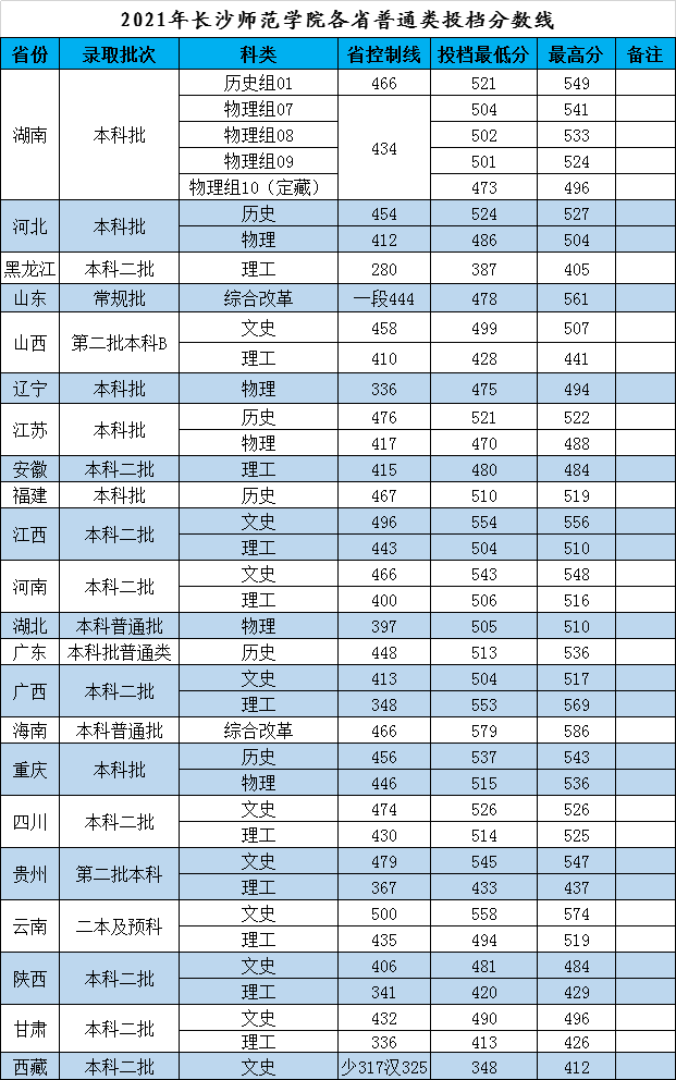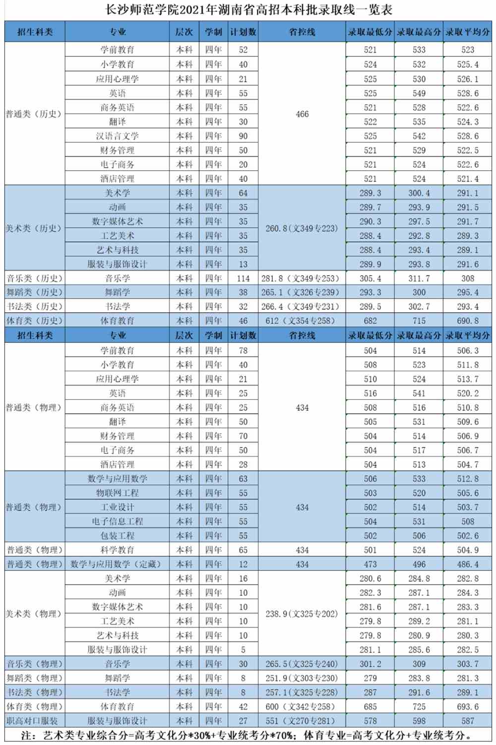 說(shuō)明:暫未查詢到長(zhǎng)沙師范學(xué)院2021年錄取分?jǐn)?shù)線,以下提供該校2021年投檔分?jǐn)?shù)線,在招生生源穩(wěn)定的情況下,投檔線和和錄取最低分基本上差不多。