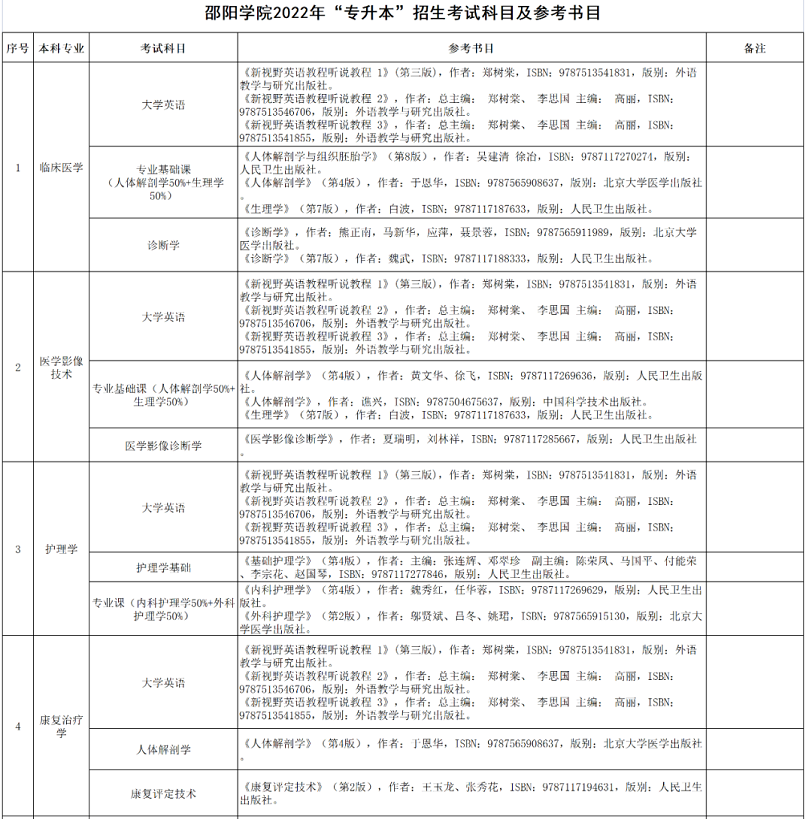2022年邵陽(yáng)學(xué)院專升本考試科目及參考書(shū)