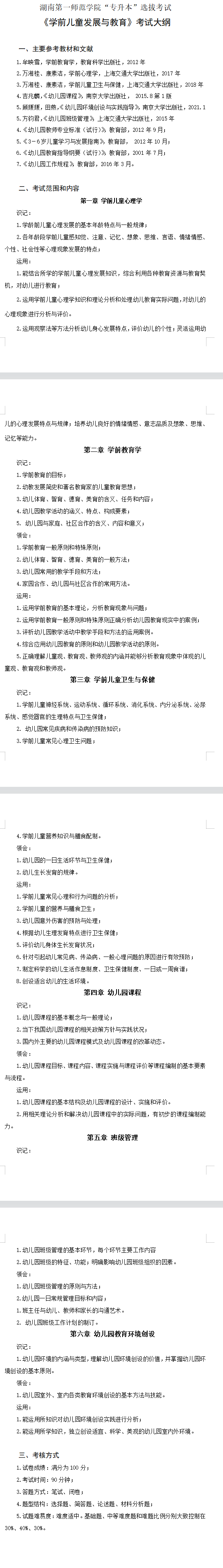 2022年湖南第一師范學院專升本《學前兒童發展與教育》考試大綱